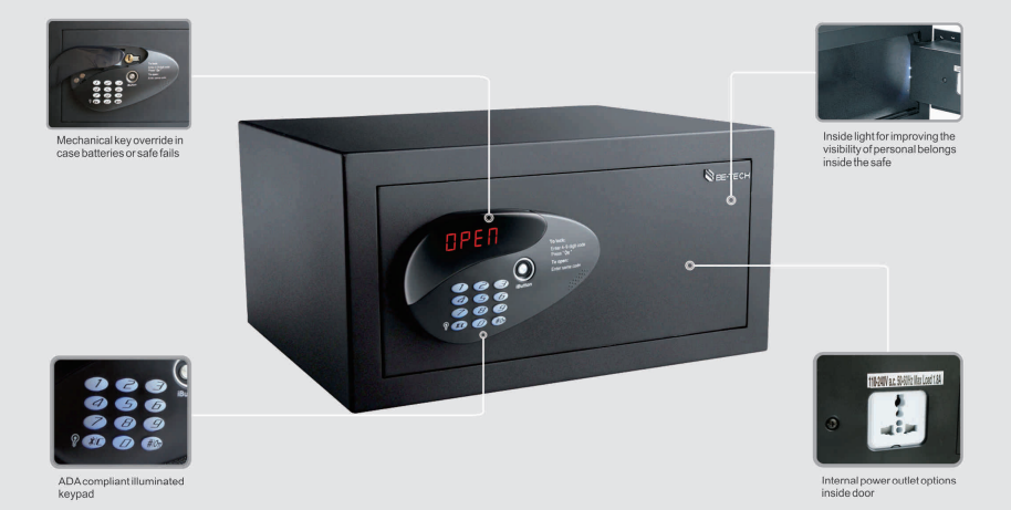 • The product offerings include electronic safes. For instance, the Be-Tech Harmony series is highlighted as an economical yet advanced choice for in-room security, featuring industry-leading audit trail technology.
